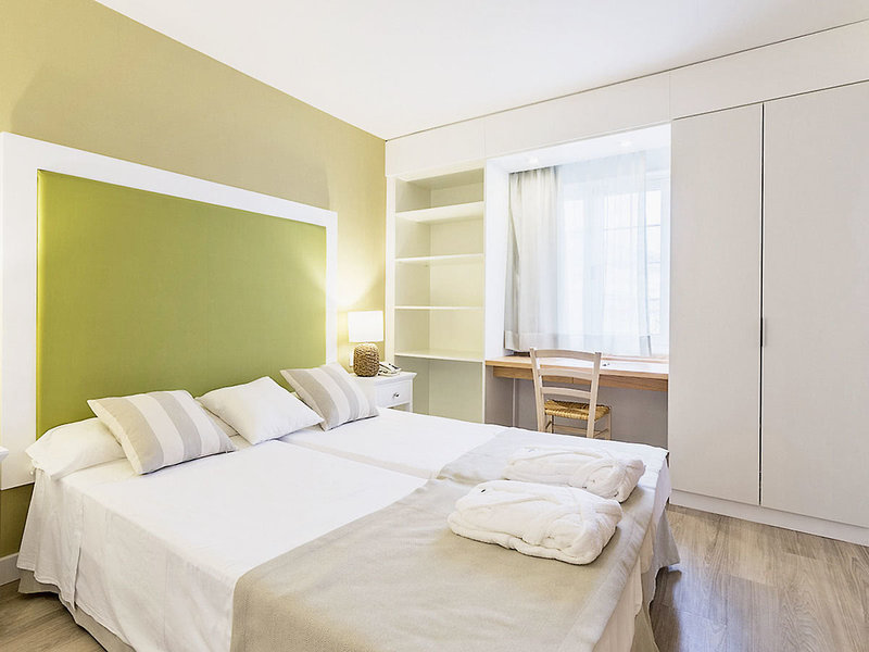 Standard-Appartement Typ B (APM, ca. 48 qm), Wohnraum (Schlafsofa), separates Schlafzimmer, Kitchenette, TV, WLAN, Telefon, Safe. Dusche, WC, Bademäntel, Föhn. Balkon/Terrasse, inklusive Mietwagen Max. 3E/2E+2K, zur Alleinnutzung buchbar (APS, ab 01.11.25)