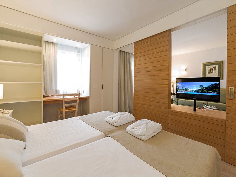 Štandardný apartmán typu B (APM, cca 48 m2), obývacia izba (rozkladacia pohovka), samostatná spálňa, kuchynský kút, TV, Wi-Fi, telefón, trezor. Sprcha, WC, župany, fén. Balkón/terasa vrátane prenájmu auta. Max. 3 osoby/2 osoby + 2 deti, rezervovateľné na výhradné použitie (APS, od 1.11.25)