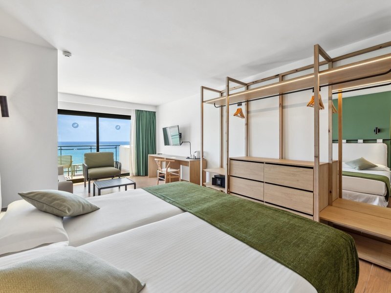 - Family Room Sea View (DZM5), Familienzimmer, erste Strandreihe, Meerblick, ca. 33 m², letzte Komplettrenovierung 2011, Gesamtanzahl der Räume in diesem Zimmertyp: 1, Aufteilung wie folgt: kombiniertes Wohn-/Schlafzimmer, 1 Schlafsofa, Babybett: ohne Gebühr, Klimaanlage: ohne Gebühr, individuell regelbar, Fußboden: Laminat, Safe: gegen Gebühr, Kochnische, Mikrowelle, Wasserkocher, Minibar: gegen Gebühr, Telefon, Internet: WLAN/WiFi: ohne Gebühr, Fernseher: Flatscreen, Reinigungsservice: täglich, ohne Gebühr, Dusche, WC, Föhn, Balkon oder Terrasse: mit Sitzgelegenheit