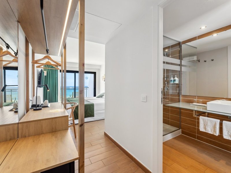 - Double Room Sea View (DZM4), Doppelzimmer, im Hauptgebäude, erste Strandreihe, Meerblick, ca. 20 m², letzte Komplettrenovierung 2025, Gesamtanzahl der Räume in diesem Zimmertyp: 1, Aufteilung wie folgt: 1 Schlafzimmer, Klimaanlage: ohne Gebühr, individuell regelbar, Fußboden: Laminat, Safe: gegen Gebühr, Minibar: gegen Gebühr, Telefon, Internet: WLAN/WiFi: ohne Gebühr, Fernseher, Reinigungsservice: täglich, ohne Gebühr, Dusche, WC, Föhn, Balkon oder Terrasse: mit Sitzgelegenheit