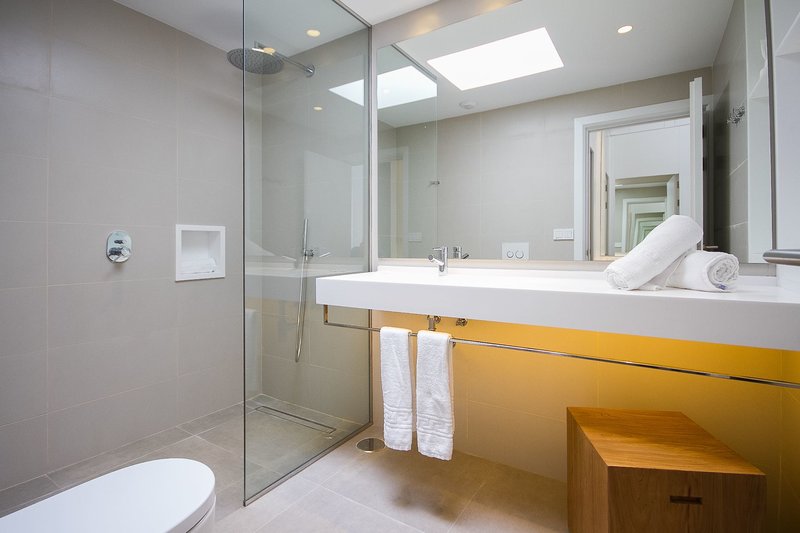 Suita s výhľadom na more: Moderne zariadené suity na prvom poschodí (69 m²) majú dve kúpeľne, ako aj klimatizáciu, TV a výhľad na more.
