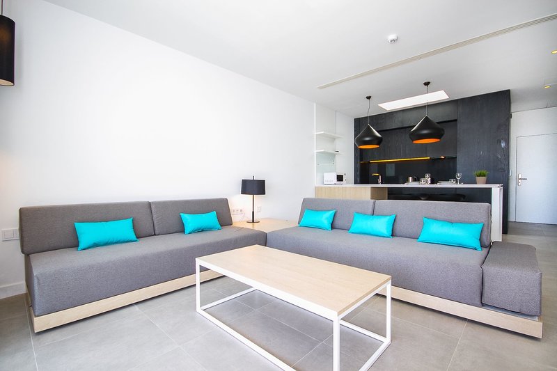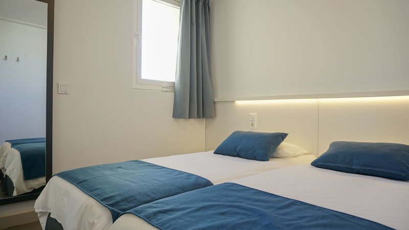 Apartmán 1 spálňa: Apartmány, ktoré sú rozmiestnené na troch poschodiach v celom komplexe, majú dve samostatné lôžka v spálni, rozkladaciu pohovku (pre 3. osobu) s oddelenou obývacou izbou, kúpeľňu so sprchou alebo vaňou, sušič na vlasy, telefón, trezor (za poplatok), priestranná šatňa, kuchynský kút s chladničkou, rýchlovarnou kanvicou, hriankovačom a mikrovlnnou rúrou, ako aj terasa/terasa so stolom a stoličkami bez výhľadu a otvorený obývací priestor/jedáleň.