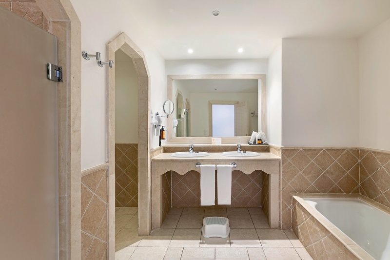 - 101-120 qm, Juniorsuite, renoviert (2025), 1 separates Schlafzimmer, kombinierter Wohn-/Essraum, Doppelbett (Kingsize), Sofabett, Dusche, Badewanne, Bademantel, Badeslipper, Haartrockner, Klimaanlage, Minibar kostenpflichtig, Safe, 2 TVs (Sat-TV), WLAN, Wasserkocher, Balkon oder Terrasse (möbliert), bei Ankunft im Zimmer Wasser