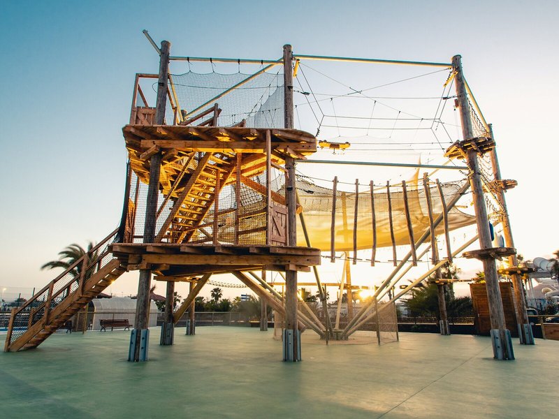 Šport a fitnes: Hostia si môžu vychutnať osviežujúci kúpeľ v jednom z troch vonkajších bazénov. K dispozícii je aj detský bazén. Vo vírivke na vás čaká čistý relax, vzrušenie z tobogánu a osviežujúce nápoje v bare pri bazéne – hostia objavia, aká rozmanitá môže byť vodná zábava. K dispozícii je aj terasa s ležadlami a slnečníkmi. Ubytovanie ponúka komplexný program vonkajších športov vrátane cyklistiky/horskej cyklistiky, tenisu, bocce a lukostreľby. Pre milovníkov vodných športov je k dispozícii vodné fitness. V interiéri majú hostia prístup k širokej škále športov vrátane posilňovne, stolného tenisu, biliardu, šípok, jogy, gymnastiky a aerobiku. Wellness centrum hotela zahŕňa kúpele a masáže. Zábavný program, detský klub a živá hudba zabezpečujú veľa zábavy pre všetky vekové kategórie.