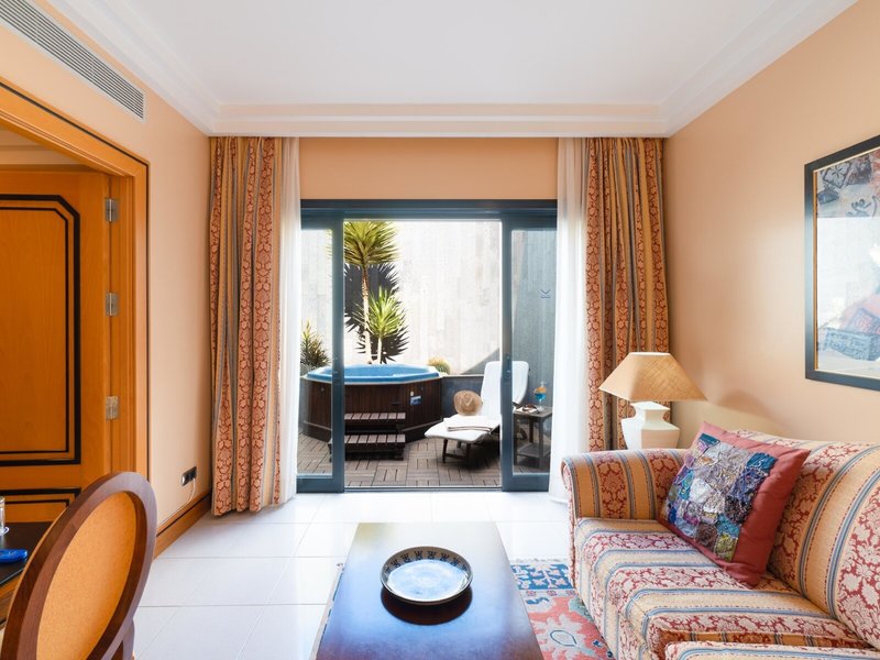 - Suite Private Jacuzzi (SUX1), Suite, Nichtraucherzimmer, im Hauptgebäude, Gartenblick, ca. 50 m², Gesamtanzahl der Räume in diesem Zimmertyp: 1, Aufteilung wie folgt: kombiniertes Wohn-/Schlafzimmer, 2 Einzelbetten (90x200cm), Klimaanlage: individuell regelbar, Fußboden: Fliesenboden, Safe: ohne Gebühr, Sofa, Schreibtisch, Minibar: gegen Gebühr, Telefon, Internet: WLAN/WiFi: ohne Gebühr, Fernseher: Flatscreen, Sat-TV, Roomservice: gegen Gebühr, Reinigungsservice: ohne Gebühr, Badewanne, WC, Bademantel: ohne Gebühr, Föhn, Balkon oder Terrasse: mit Whirlpool, Terrasse: mit Liegestühlen, mit Sitzgelegenheit, mit Whirlpool