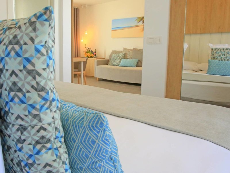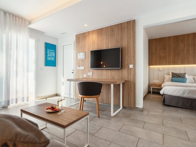- 1-spálňový apartmán s čiastočným výhľadom na more (SUX5), Apartmán, nefajčiarska izba, v hlavnej budove, novostavba, čiastočný výhľad na more, cca 42 m², celkový počet izieb v tomto type izby: 2, rozloženie nasledovné: Obývacia izba, 1 spálňa, 2 samostatné postele (100x200cm), 1 rozkladacia pohovka (170x190cm), Detská postieľka: zadarmo, nutná rezervácia, Klimatizácia: zadarmo, studená, teplá, Podlaha: dlažba, Trezor: za poplatok, Sedacia časť, Pohovka, Písací stôl, Telefón, Internet: WLAN/WiFi: zadarmo, Televízor: Plochá obrazovka, v obývacej časti, Satelitná TV, Upratovacia služba: denne, zadarmo, Sprcha, WC, Fén, Balkón alebo terasa: s ležadlami, s posedením