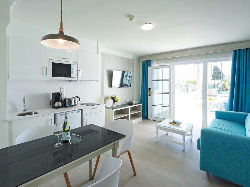 Vaše ubytovanie: Klimatizácia a kúrenie zabezpečujú príjemnú vnútornú klímu v izbách. Z balkóna alebo terasy sa hostia môžu kochať výhľadom do záhrady. Izby majú manželskú posteľ a rozkladaciu pohovku. K dispozícii sú samostatné spálne. Prístelky je možné vyžiadať. K dispozícii je aj trezor, minibar a písací stôl. Kuchynka je dobre vybavená na vlastné varenie a má chladničku, sporák, mikrovlnnú rúru, príslušenstvo na prípravu kávy/čaju a rúru. Telefón s priamou voľbou, televízor so satelitným/káblovým príjmom, rádio, budík a WiFi (bezplatné) poskytujú najlepší komfort počas dovolenky. Hostia môžu tiež využiť službu na dobrú noc. Kúpeľňa je vybavená sprchovacím kútom a vaňou, sušičom vlasov a telefónom. K dispozícii sú aj bezbariérové izby s bezbariérovými kúpeľňami. Hotel ponúka rodinné a nefajčiarske izby.