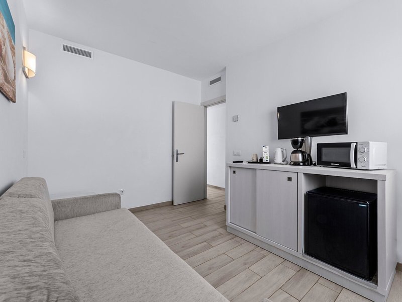 - Two Bedroom Apartment Superior (APX2), Appartement, Nichtraucherzimmer, im Nebengebäude, ca. 45 m², letzte Teilrenovierung 2020, Gesamtanzahl der Räume in diesem Zimmertyp: 3, Aufteilung wie folgt: kombiniertes Wohn-/Schlafzimmer, 2 Schlafzimmer, 4 Einzelbetten, 1 Schlafsofa, Babybett: ohne Gebühr, Anfrage notwendig, Klimaanlage: ohne Gebühr, zentral gesteuert, Fußboden: Fliesenboden, Safe: ohne Gebühr, Sitzecke, Schreibtisch, Kochnische, Kühlschrank: ohne Gebühr, Mikrowelle, Wasserkocher, Toaster, Esstisch, Telefon, Internet: WLAN/WiFi: ohne Gebühr, Fernseher: Flatscreen, im Wohnbereich, im Schlafzimmer, deutsches Programm, Sat-TV, Reinigungsservice: täglich, ohne Gebühr, Dusche, WC, Föhn, Terrasse: mit Sitzgelegenheit