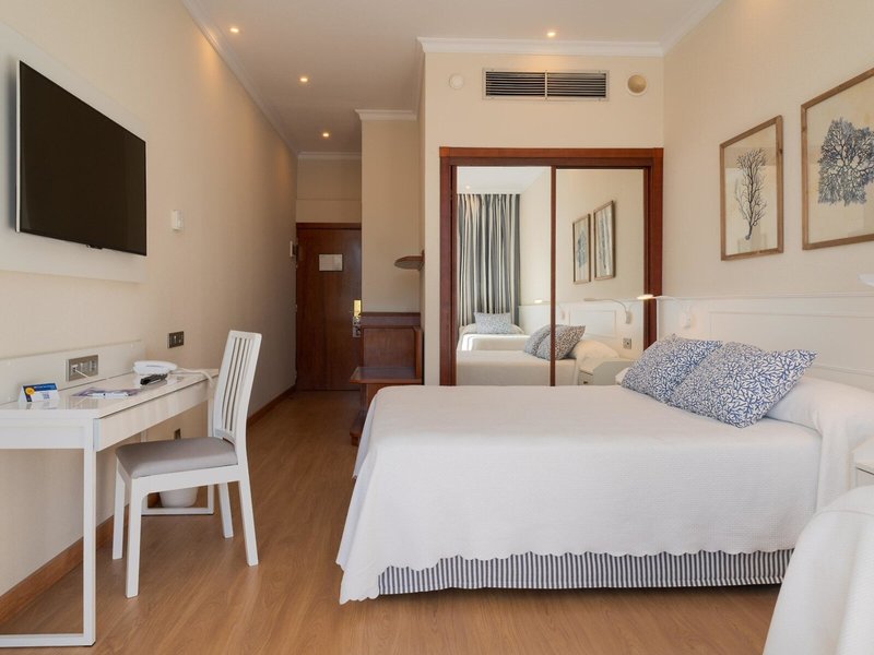 - Doppelzimmer Confort Meerblick (DZM1), Doppelzimmer, Nichtraucherzimmer, im Hauptgebäude, Meerseite, Meerblick, Gartenblick, ca. 23 m², letzte Komplettrenovierung 2020, Gesamtanzahl der Räume in diesem Zimmertyp: 1, Aufteilung wie folgt: 1 Schlafzimmer, Babybett: ohne Gebühr, Klimaanlage: individuell regelbar, Fußboden: Laminat, Safe: gegen Gebühr, Schreibtisch, Minibar: gegen Gebühr, Telefon, Internet: WLAN/WiFi: ohne Gebühr, Fernseher: Flatscreen, deutsches Programm, Sat-TV, Roomservice: gegen Gebühr, Reinigungsservice, Badewanne oder Dusche, WC, Föhn, Balkon oder Terrasse: mit Sitzgelegenheit