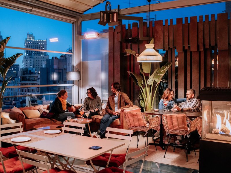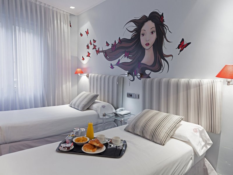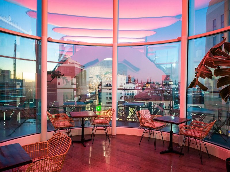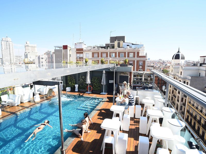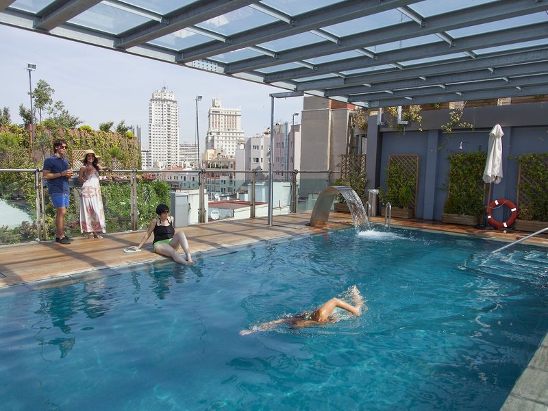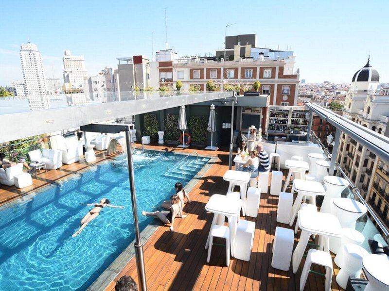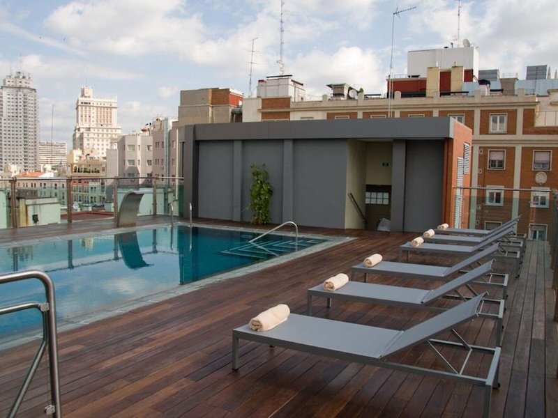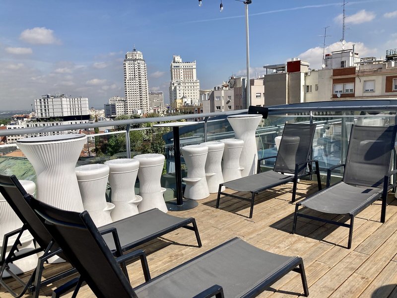 Lage & Umgebung Das Hotel liegt im Zentrum von Madrid, nur etwa 3 Gehminuten von der Gran Via und dem Geschäftsviertel der Stadt mit zahlreichen Bars, Restaurants und Geschäften entfernt. Nach einem ca. 15-minütigen Spaziergang erreicht man den Platz Puerta del Sol. Das Hotel bietet eine gute Anbindung zum Königspalast und den Sabatini-Gärten. Der Flughafen Madrid-Barajas befindet sich in ungefähr 12 km Entfernung.