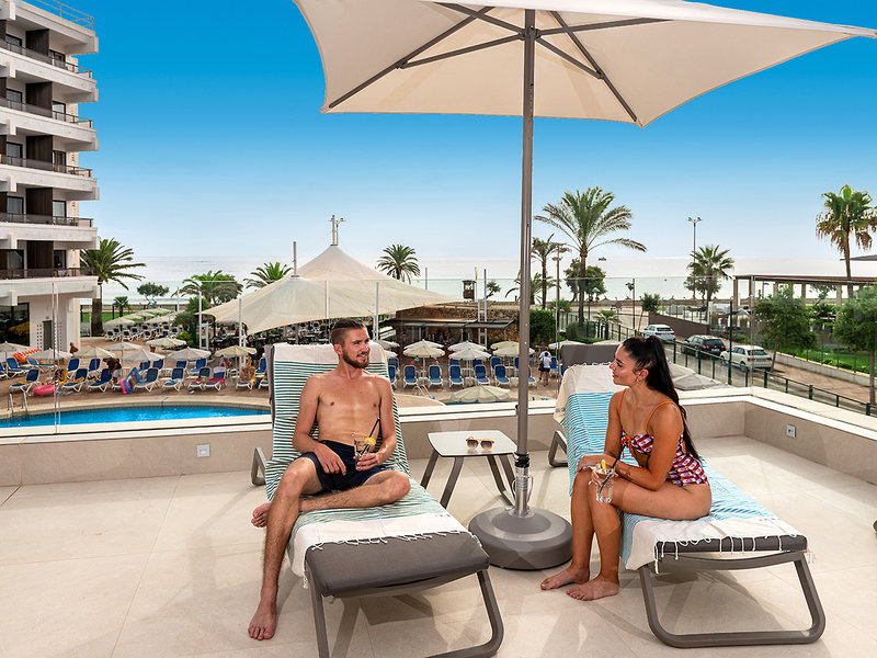 Ausstattung: Geschmackvolles, gut ausgestattetes Hotel mit zur Meerseite angelegter Poollandschaft, Sonnenterrassen, Liegen und Schirme inklusive, (Badetücher geg. Kaution, Wechsel geg. Gebühr), Pool-/Snackbar mit teilweise überdachter Sitzterrasse und direktem Strandzugang. Großzügig angelegte Sonnenterrasse auf mehreren Ebenen mit Chill-out-Zone, Liegen, Schirmen, Bali-Betten (gegen Gebühr) und herrlichem Meerblick. Empfangshalle, Rezeption, WLAN inkl., Sitzgruppen, Aufenthaltsraum (TV), Bar, Lounge, Showbühne. Großzügiges, gut eingerichtetes Restaurant mit halb offenem Wintergarten und direktem Meerblick. Landeskategorie: 4 Sterne, 250 Zimmer, 5 Etagen, 3 Lifte.