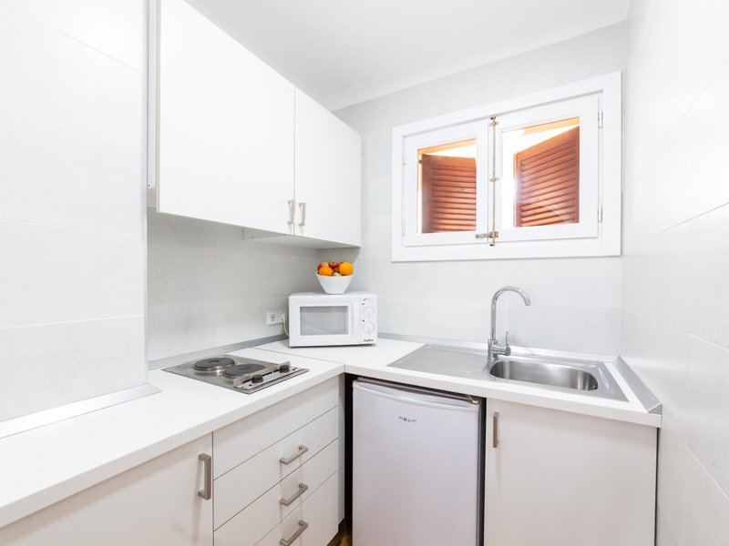- Apartment 1 Bedroom (APX1), Appartement, Nichtraucherzimmer, im Hauptgebäude, Poolseite, Poolblick, Innenhofblick, ca. 36 m², letzte Teilrenovierung 2019, kombiniertes Wohn-/Schlafzimmer, 1 Schlafzimmer, 2 Einzelbetten (90x200cm), 2 Schlafsofas (90x200cm), Klimaanlage: individuell regelbar, kalt, warm, Fußboden: Fliesenboden, Safe, Sitzecke, Kochnische, Kühlschrank, Mikrowelle, Wasserkocher, Toaster, Esstisch, Telefon, Internet: WLAN/WiFi, Fernseher: im Wohnbereich, deutsches Programm, Reinigungsservice: wöchentlich 10:00 Uhr - 15:00 Uhr, ohne Gebühr, Dusche, WC, Föhn, Kosmetikspiegel, Balkon oder Terrasse: mit Sitzgelegenheit
