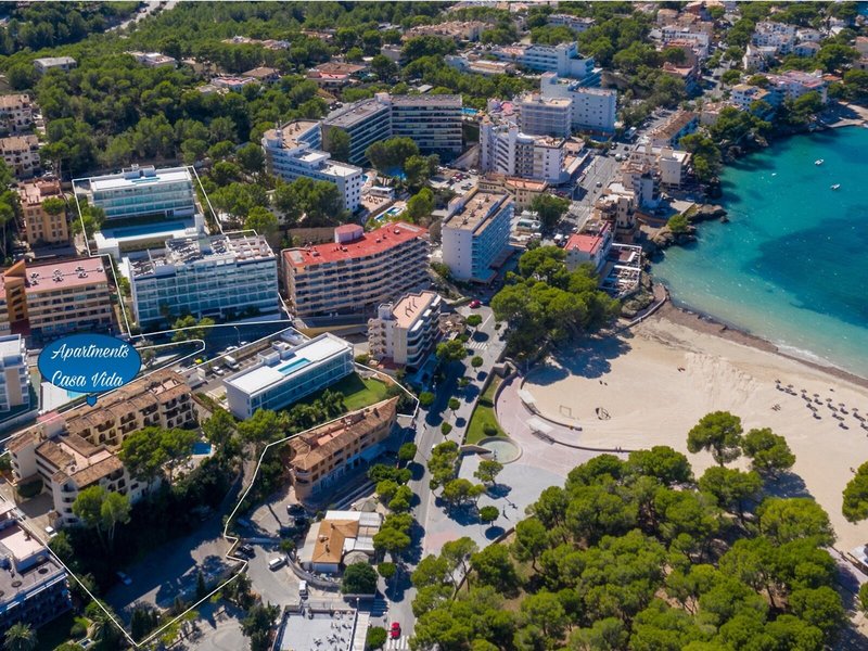 Poloha a okolie Komplex sa nachádza asi 150 m od pláže Santa Ponsa, ktorá je zasadená do krásnej zátoky. Do historického hlavného mesta Mallorky Palma je to asi 19 km. Milovníci golfu nájdu dve atraktívne golfové ihriská len pár km od apartmánového komplexu.