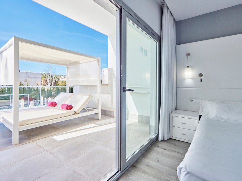 - Deluxe Pool View and Bali Bed (DZX4), Doppelzimmer, Nichtraucherzimmer, Mindestalter im Zimmer: 18 Jahre, im Hauptgebäude, Poolseite, Poolblick, ca. 25 - 25 m², Gesamtanzahl der Räume in diesem Zimmertyp: 1, Aufteilung wie folgt: kombiniertes Wohn-/Schlafzimmer, 1 King Size Bett (200x200cm), Klimaanlage: saisonabhängig, zentral gesteuert, kalt, warm, Fußboden: Laminat, Safe: ohne Gebühr, Sofa, Kühlschrank: ohne Gebühr, Nespressomaschine, Wasserkocher, Telefon, Internet: WLAN/WiFi: ohne Gebühr, Fernseher: Flatscreen, deutsches Programm, Sat-TV, Dusche, Regendusche, WC, Bademantel: ohne Gebühr, Slipper: ohne Gebühr, Föhn, Kosmetikspiegel, Terrasse: mit Liegen, mit Sitzgelegenheit