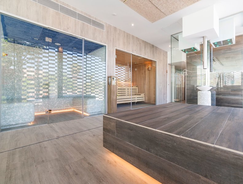 Wellness: Hallenbad, Sauna, Dampfbad, Eisbecken und Heißer Stein (Zugang für Gäste ab 18 Jahre, eine Stunde pro Tag auch für Familien mit Kindern ab 4 Jahren geöffnet.). Gegen Gebühr: Massagen und Anwendungen.