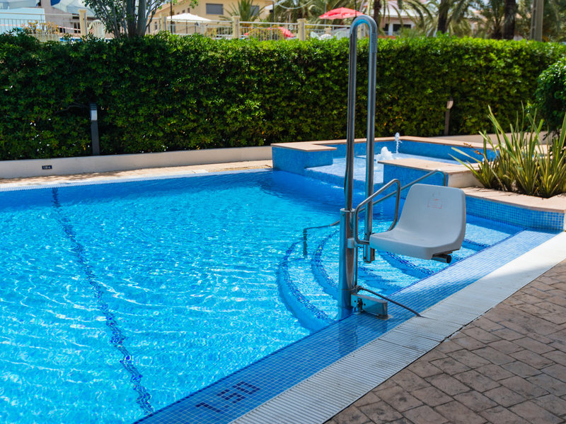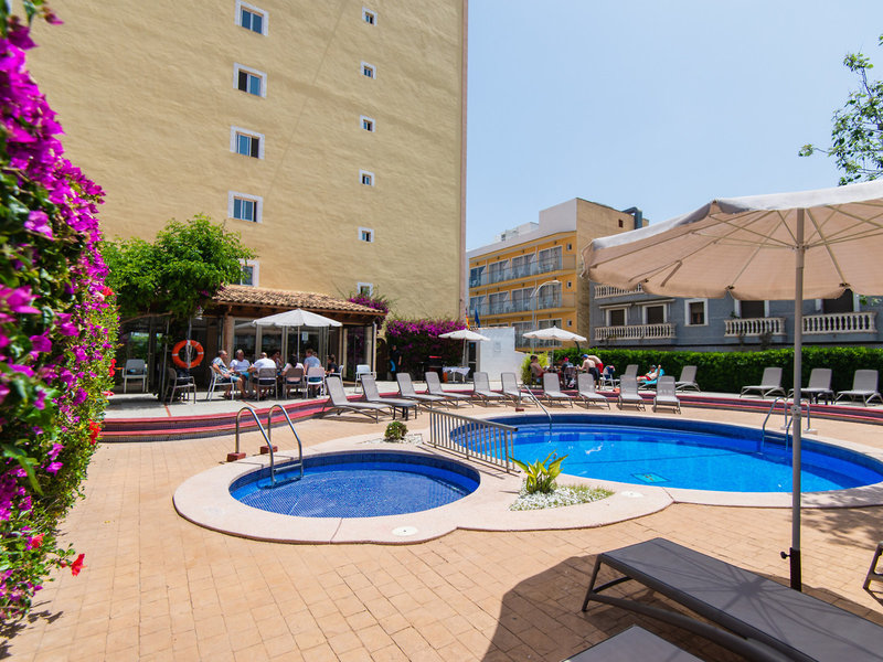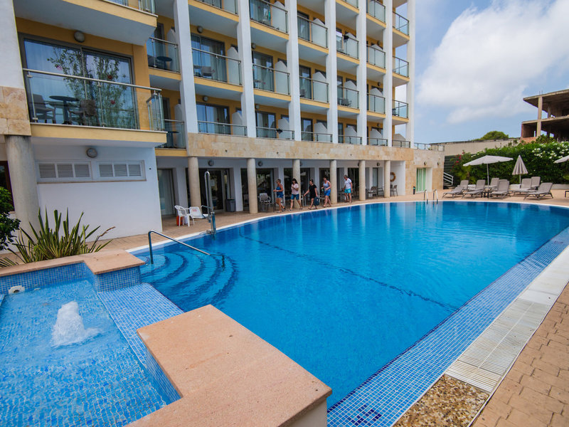 Ausstattung: 2016 zuletzt renoviert. Garten, 2 Pools, Kinderpool. Liegen, Schirme am Pool und am Strand (geg. Geb.), Pool-Bar, Dachterrasse. Empfangshalle, Rezeption, Lobby-Bar, Safe (geg. Geb.), TV-Lounge. Bar, Cafeteria, Parkplatz (geg. Geb.). 107 Zimmer, 6 Etagen, 2 Lifte.