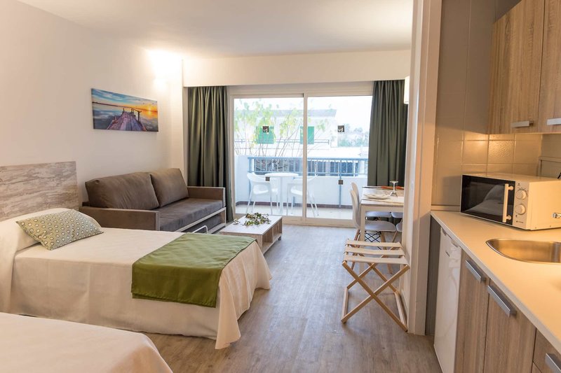 Studio: Die zum Sommer 2021 renovierten Studios bieten Bad/WC, einen kombinierten Wohn-/Schlafbereich, Schlafsofa, Kitchenette, Klimaanlage, Mietsafe, TV (gegen Kaution) sowie Balkon (S12). Zimmergröße ca. 37m².