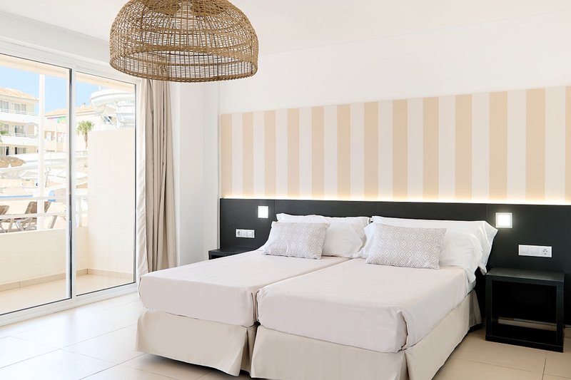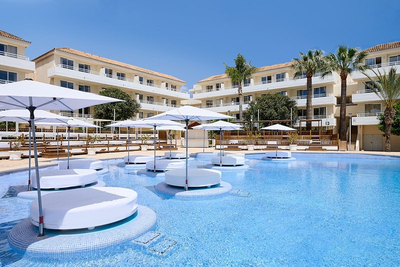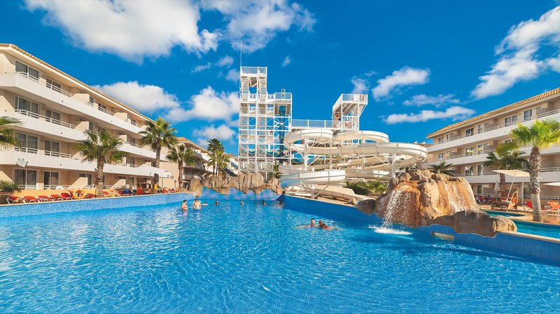 Ausstattung: Im Winter 2023/24 komplett neu konzipiertes und aufwendig umgestaltetes Familienresort mit 656 renovierten und komfortablen Suiten auf 3 Etagen verteilt auf 24 Wohnblöcke. In den 3 großzügigen Innenhöfen befinden sich eine Swimmingpool-Landschaft, ein Splash-Pool und der Wasserpark mit diversen, aufregenden Wasserrutschen (2 davon mit Größenbeschränkung). Die Nutzung dieses größten Wasserparks auf den Balearen innerhalb eines Hotels ist für Hotelgäste inklusive. Liegen und Schirme sind in allen Poolbereichen inklusive. In einem Teilbereich der Anlage befindet sich der exklusive MAGNUS Bereich mit eigenem Restaurant. Die restliche Hotelanlage bietet eine großzügige Lobby mit Rezeption, gemütlichen Aufenthaltesbereich, ein Buffetrestaurant, McKevitt's Sports Bar à la carte (nicht im All-Inclusive enthalten, für Gäste der MAGNUS-Zimmer mit einem Aufenthalt ab 7 Nächten ist ein Abendessen pro 7 Nächten Aufenthalt inklusive. Alle Gäste erhalten 20 % Rabatt auf Getränke) und eine Pool-/Snackbar.