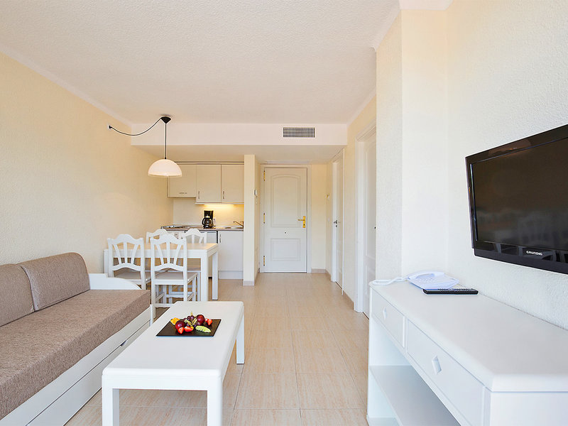 Apartmán (SU, cca 36 m²), priestranná obývacia izba s rozkladacou pohovkou pre dve osoby, samostatná spálňa, klimatizácia (teplá/chladená), minibar (za poplatok), Wi-Fi (v cene), trezor, TV. Kúpeľňa so sprchovacím kútom, WC, zrkadlom na toaletu, sušičom vlasov a toaletnými potrebami. Veľký balkón. Max. 3 dospelí/2 dospelí + 1 dieťa