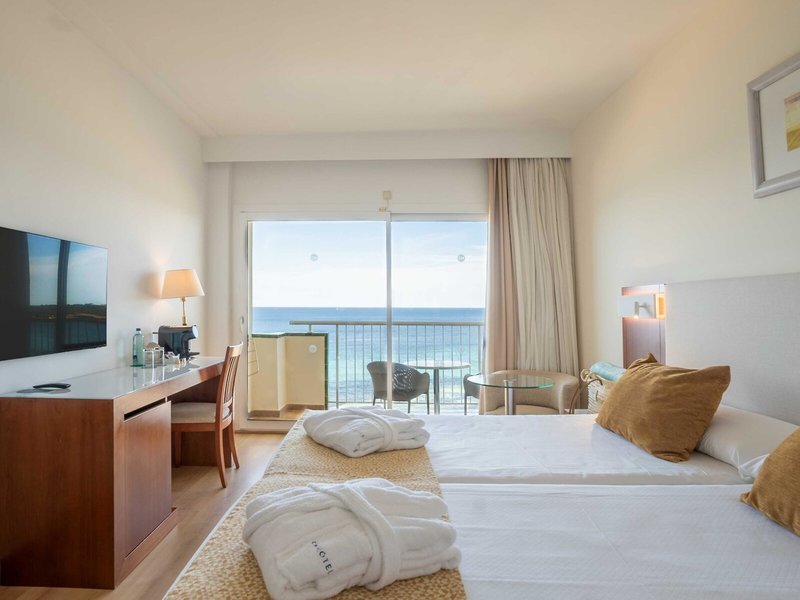 - Double Premium Sea View (DZM2), Doppelzimmer, im Hauptgebäude, Meerseite, Meerblick, Buchtblick, Blick auf Mar, ca. 28 m², letzte Komplettrenovierung 2024, letzte Teilrenovierung 2024, Gesamtanzahl der Räume in diesem Zimmertyp: 1, Aufteilung wie folgt: 1 Schlafzimmer, Klimaanlage: ohne Gebühr, zentral gesteuert, kalt, warm, Fußboden: Parkett, Safe: gegen Kaution, Minibar: gegen Gebühr, Telefon, Internet: WLAN/WiFi: ohne Gebühr, Fernseher, Roomservice: gegen Gebühr, Reinigungsservice: ohne Gebühr, Dusche, WC, Föhn, Balkon