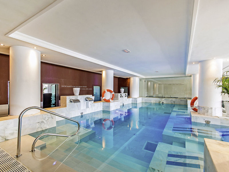 Wellness und Fitness: Großzügiger, moderner Spa-Bereich (ca. 700 qm, ab 18 J.; gegen Gebühr), Meerwasserhallenbad, Jacuzzi, finnische Sauna, Dampfbad, Eisgrotte, Erlebnisduschen, Ruheraum
