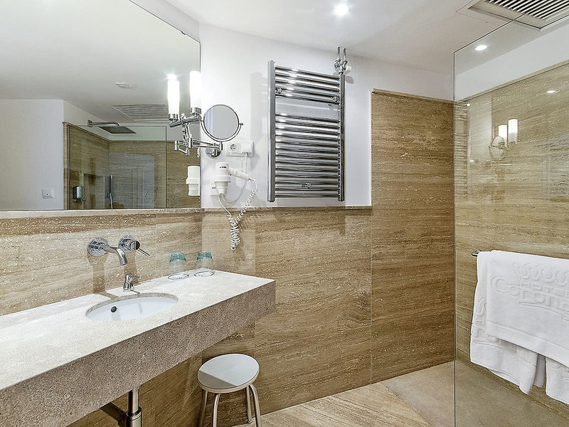 Superior-Doppelzimmer (DSM, ca. 27 qm), Klimaanlage (warm/kalt), Minibar (gegen Gebühr), Nespresso Kaffeemaschine, TV (32 Zoll), Telefon, WLAN (inklusive), Safe. Badezimmer mit Dusche, WC, Föhn, Bademäntel. Balkon, Meerblick. Eintritt zum Spa-Bereich inklusive. Max. 3E, auch zur Alleinnutzung buchbar (DEP)
