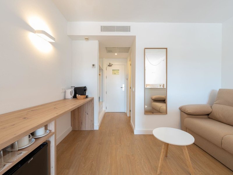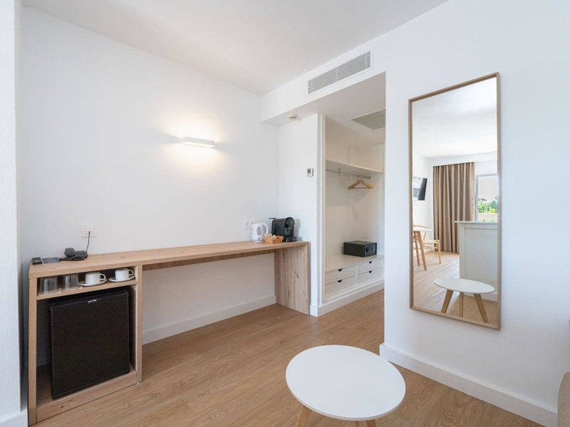 - Junior Suite Pool View (JSX2), Juniorsuite, Nichtraucherzimmer, im Hauptgebäude, Poolseite, Poolblick, ca. 30 m², letzte Teilrenovierung 2023, Gesamtanzahl der Räume in diesem Zimmertyp: 20, Aufteilung wie folgt: kombiniertes Wohn-/Schlafzimmer, 2 Einzelbetten (100x200cm), 2 Schlafsofas (90x190cm), Babybett, Klimaanlage: zentral gesteuert, Heizung: zentral gesteuert, Fußboden: Laminat, Safe: ohne Gebühr, Schreibtisch, Kühlschrank, Kaffeemaschine, Nespressomaschine, Wasserkocher, Esstisch, Minibar, Telefon, Internet: WLAN/WiFi: ohne Gebühr, Fernseher: Flatscreen, im Wohnbereich, Sat-TV, Badewanne oder Dusche, Föhn, Balkon: mit Sitzgelegenheit