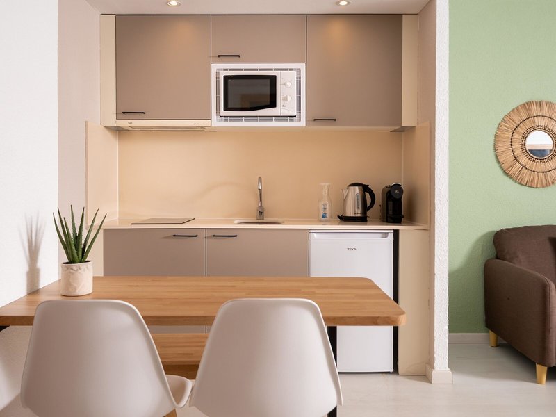 So wohnen Sie: In den Zimmern gibt es eine Klimaanlage, eine zentral steuerbare Heizung und ein Heizofen. Die Gäste können den Poolblick von Balkon oder Terrasse genießen. Die Zimmer verfügen über ein Sofabett. Es sind separate Schlafzimmer vorhanden. Es gibt einen Schreibtisch. Die Kochnische ist mit einem Kühlschrank, einem Minikühlschrank, einem Herd, einer Mikrowelle und einer Tee-/Kaffeemaschine gut für Selbstversorger ausgestattet. Darüber hinaus sind ein Telefon, ein TV-Gerät und WiFi (ohne Gebühr) vorhanden. Im Badezimmer, mit einer Dusche ausgestattet, steht ein Haartrockner zur Verfügung.