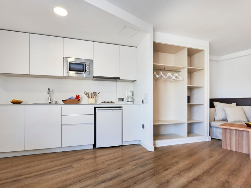 Standard Apartment (Balkon o. Terrasse): Klimaanlage (zentral gesteuert). Kitchenette mit Kühlschrank, Wasserkocher, Mikrowelle, Geschirr. Internet (geg. Geb.), Safe (geg. Geb.). Bad/Dusche, WC, Föhn. Balk./Terr. Max. 3E.