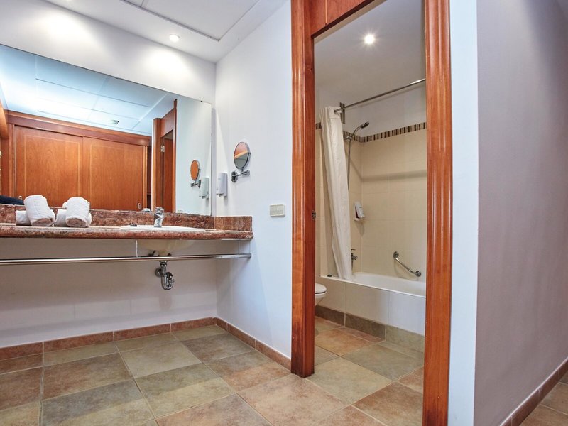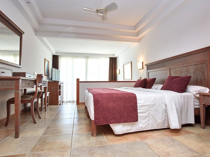 - Large double room (DZX2), Dreibettzimmer, Nichtraucherzimmer, im Hauptgebäude, im Nebengebäude, Poolblick, Innenhofblick, ca. 26 m², Gesamtanzahl der Räume in diesem Zimmertyp: 1, Aufteilung wie folgt: kombiniertes Wohn-/Schlafzimmer, 2 Einzelbetten (100x200cm), 1 Schlafsofa (190x80cm), Babybett: ohne Gebühr, Anfrage nicht notwendig, Klimaanlage: zentral gesteuert, kalt, warm, Heizung: individuell regelbar, zentral gesteuert, Fußboden: Fliesenboden, Safe: Barzahlung, pro Woche ca. 15 EUR, Deckenventilator, Schreibtisch, Kühlschrank: ohne Gebühr, Telefon, Internet: WLAN/WiFi: Barzahlung, pro Woche ab 10 EUR, Fernseher: Flatscreen, deutsches Programm, Sat-TV, Badewanne oder Dusche, WC, Föhn, Kosmetikspiegel, Balkon: mit Sitzgelegenheit, Balkon oder Terrasse: mit Sitzgelegenheit