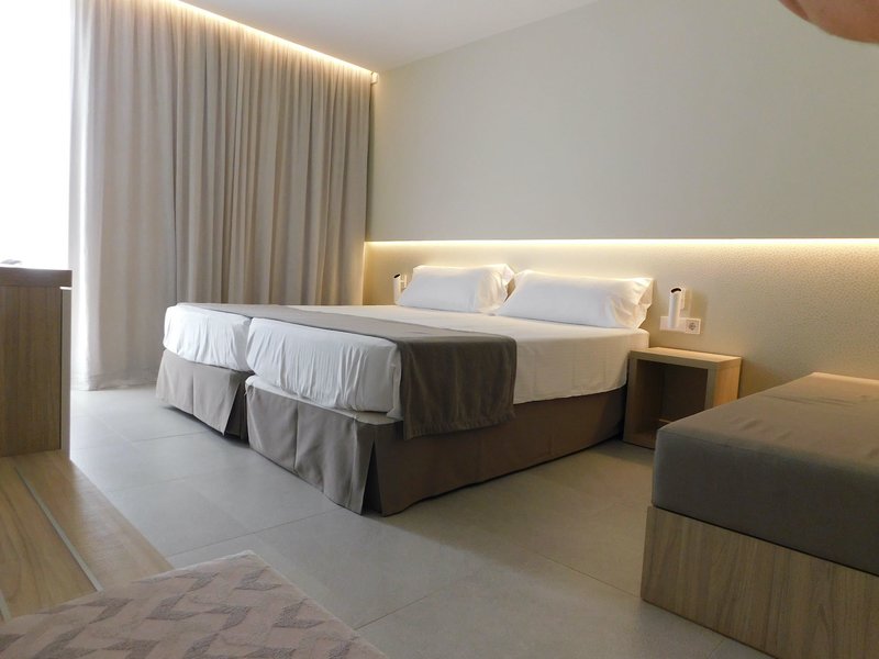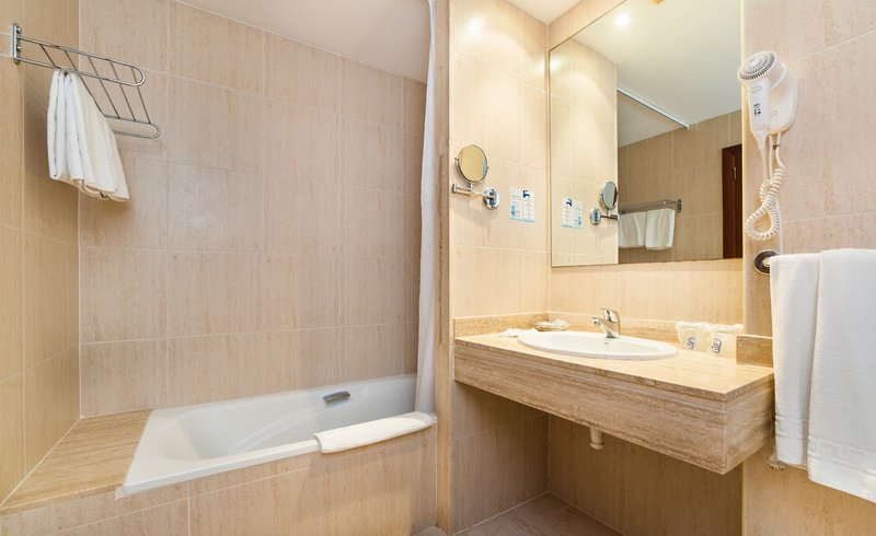 Dvojlôžková izba: vybavená kúpeľňou s vaňou/WC, sušičom vlasov, klimatizáciou, TV, mini chladničkou, telefónom, trezorom na prenájom a balkónom (D). Veľkosť izby cca 26 m².