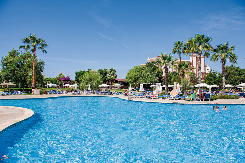 Weitläufige Außenanlage mit großer Poollandschaft und Poolbar