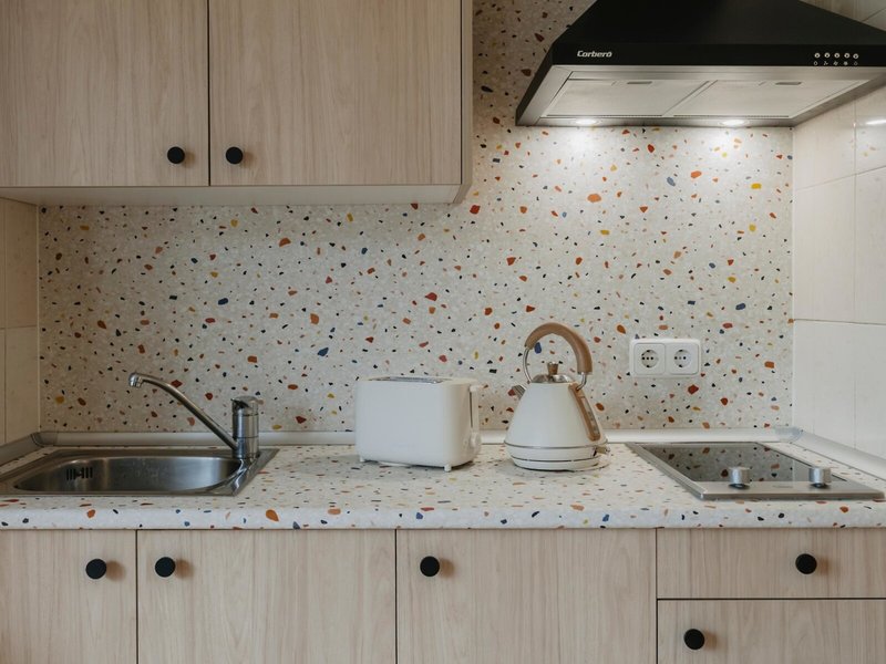 - Comfort Studio (STX1), Studio, Nichtraucherzimmer, Straßenseite, Blick auf street view, ca. 18 - 25 m², letzte Komplettrenovierung 2025, Gesamtanzahl der Räume in diesem Zimmertyp: 1, Aufteilung wie folgt: kombiniertes Wohn-/Schlafzimmer, 2 Einzelbetten (90x190cm), Babybett: Barzahlung, pro Tag ca. 4 EUR, Anfrage & Reservierung notwendig, Klimaanlage: ohne Gebühr, individuell regelbar, zentral gesteuert, kalt, warm, Heizung: individuell regelbar, zentral gesteuert, Fußboden: Fliesenboden, Safe: ohne Gebühr, Kochnische, Kühlschrank: ohne Gebühr, Kochplatte, Mikrowelle, Kaffee-/Teezubereiter, Wasserkocher, Toaster, Esstisch, Telefon, Internet: WLAN/WiFi: ohne Gebühr, Fernseher: Flatscreen, im Schlafzimmer, deutsches Programm, Sat-TV, Reinigungsservice: mehrmals pro Woche, ohne Gebühr, Badewanne oder Dusche, WC, Föhn, Balkon: mit Sitzgelegenheit