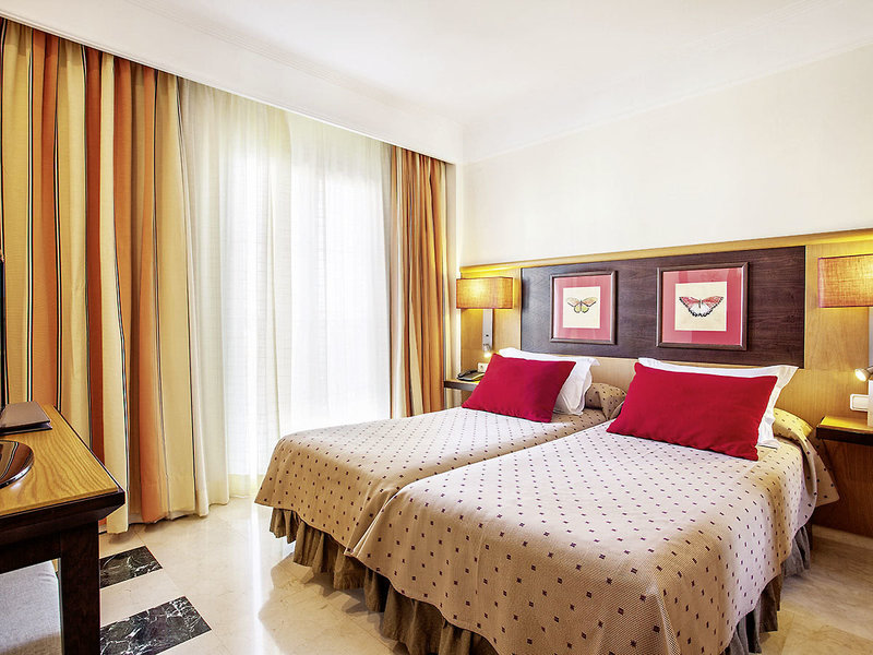 Juniorsuite (JS, ca. 32 qm), komfortabel eingerichtet, Klimaanlage (warm/kalt, zentral), Minibar (gegen Gebühr), TV (32 Zoll), Telefon, WLAN (inklusive), Mietsafe. Badezimmer mit Dusche, WC, Föhn, Bademäntel, Slipper. Balkon/Terrasse. Wahlweise Poolblick (JSP). Max. 2E