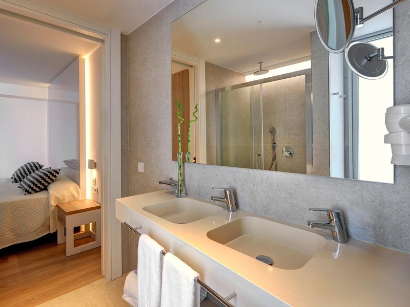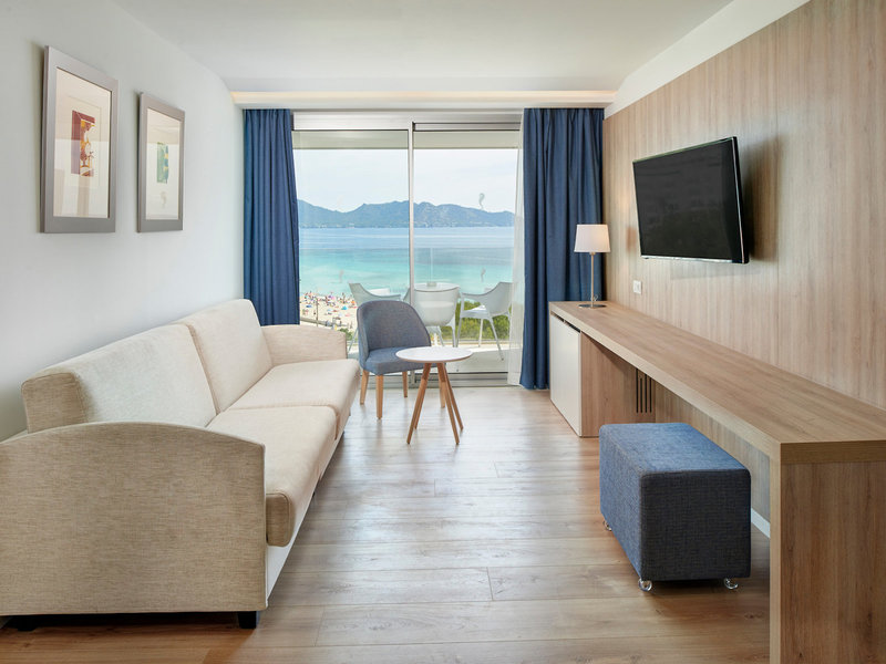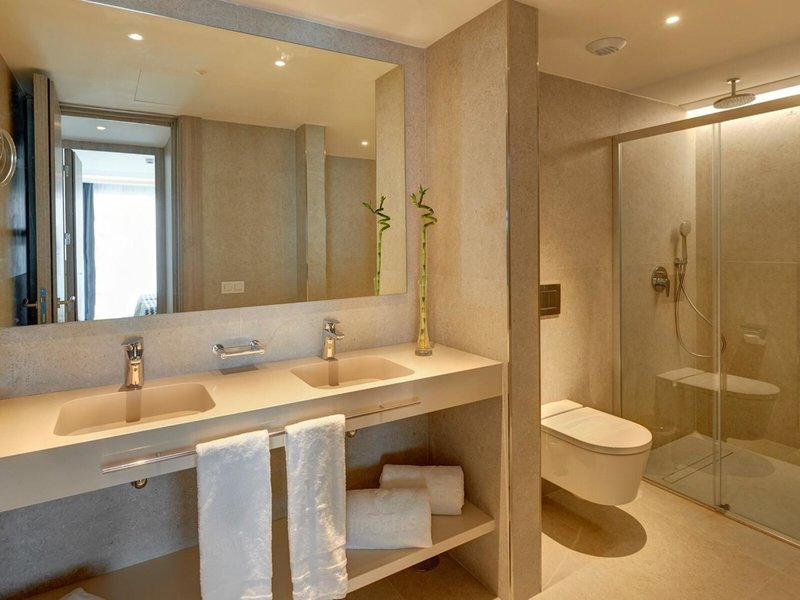 - Juniorsuite pool view (JSX1), Juniorsuite, im Hauptgebäude, seitlicher Meerblick, Poolblick, letzte Komplettrenovierung 2018, Gesamtanzahl der Räume in diesem Zimmertyp: 1, Aufteilung wie folgt: kombiniertes Wohn-/Schlafzimmer, Klimaanlage: ohne Gebühr, wetterabhängig, individuell regelbar, kalt, warm, Heizung: saisonabhängig; wetterabhängig, individuell regelbar, Fußboden: Parkett, Safe: ohne Gebühr, Minibar: gegen Gebühr, Softdrinks: gegen Gebühr, Wasser: gegen Gebühr, alkoholische Getränke: gegen Gebühr, Snacks: gegen Gebühr, Minibarauffüllung: wöchentlich, Telefon, Internet: WLAN/WiFi: ohne Gebühr, Fernseher: Flatscreen, im Schlafzimmer, deutsches Programm, Sat-TV, Reinigungsservice: täglich, ohne Gebühr, Dusche, WC, Föhn, Kosmetikspiegel, Balkon: mit Sitzgelegenheit