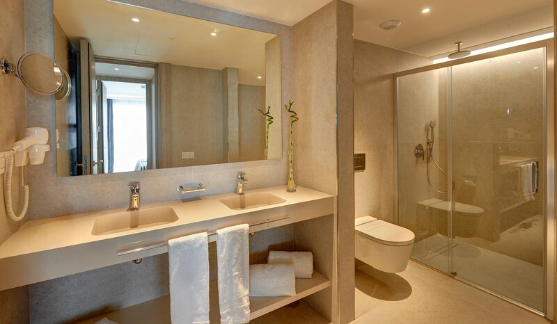 Standard Doppelzimmer (Balkon o. Terrasse, Meerblick): Klimaanlage (zentral gesteuert), Minibar (geg. Geb.). Telefon, Internet (geg. Geb.), Safe (geg. Geb.). Bad/Dusche, WC, Föhn. Balk./Terr. Max. 2E.