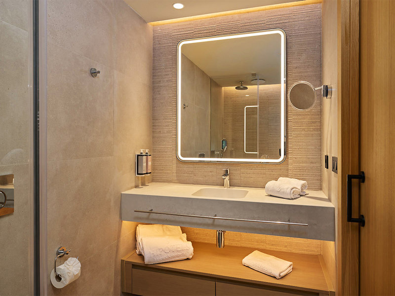 Select- Doppelzimmer (DMS, ca. 22 qm), renoviert, Klimaanlage (warm/kalt), Smart-TV, Kapsel-Kaffeemaschine, Telefon, WLAN (inkl.), Safe. Bad, WC, Föhn, Bademäntel. Balkon in den oberen Etagen mit Meerblick (Etage 6, 7 und 8). Max. 3E