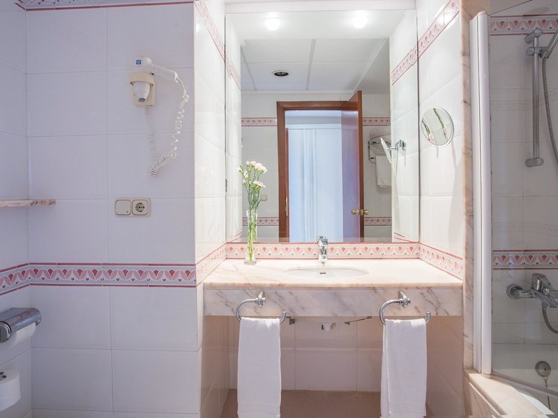 - Double room pool side view (DZX2), Doppelzimmer, im Hauptgebäude, Poolseite, Gartenblick, ca. 19 - 21 m², letzte Komplettrenovierung 1994, Gesamtanzahl der Räume in diesem Zimmertyp: 1, Aufteilung wie folgt: 1 Schlafzimmer, Babybett: ohne Gebühr, Klimaanlage: zentral gesteuert, kalt, warm, Fußboden: Laminat, Safe: gegen Gebühr, Schreibtisch, Minibar: Softdrinks: gegen Gebühr, Wasser: gegen Gebühr, alkoholische Getränke: gegen Gebühr, Minibarauffüllung: 10:30 Uhr - 13:00 Uhr, Telefon, Internet: WLAN/WiFi: ohne Gebühr, Fernseher: Flatscreen, im Schlafzimmer, deutsches Programm, Deutsche Welle, Sat-TV, Tageszeitung: gegen Gebühr, Sprachen: deutsch, englisch, spanisch, Badewanne, WC, Bademantel: gegen Gebühr, Slipper: gegen Gebühr, Föhn, Balkon: mit Sitzgelegenheit