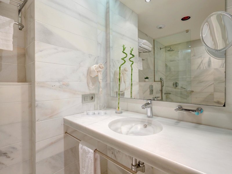 - Junior suita s výhľadom na bazén (JSX1), junior suita, v hlavnej budove, strana bazéna, výhľad na bazén, výhľad do záhrady, posledná kompletná rekonštrukcia v roku 2001, celkový počet izieb v tomto type izby: 1, rozloženie: kombinovaná obývacia izba/ spálňa, detská postieľka: zdarma, klimatizácia: centrálna ovládaná, studená, teplá, podlaha: dlažba, trezor: za poplatok, pohovka, minibar: bez poplatku, nealko nápoje: za poplatok, voda: za poplatok, alkoholické nápoje: za poplatok, dopĺňanie zásob minibaru: denne 10:30 - 13:00, telefón, internet: WLAN/WiFi: zadarmo, TV: plochá obrazovka, v spálni, nemecký program, Deutsche Welle, satelitná TV , denná tlač: za poplatok, jazyky: nemčina, angličtina, španielčina, samostatná sprcha, vaňa, WC, župan : za poplatok, papuče: za poplatok, fén, balkón: s posedením