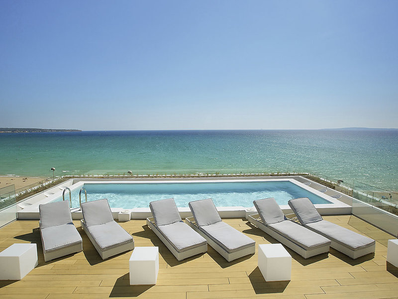 Ausstattung: Beliebtes Hotel der gehobenen Mittelklasse. Im Außenbereich Pool, Sonnenterrasse zur Meerseite, Liegen, Schirme (Badetücher gegen Kaution), Pool-/Snackbar mit Sitzterrasse. Panoramaterrasse mit Bar und Blick über die Bucht von Palma. Empfangshalle, Rezeption, WLAN (inklusive), Sitzgruppen, Bar, Restaurant. Landeskategorie: 4 Sterne, 205 Zimmer, 7 Etagen, 2 Lifte.