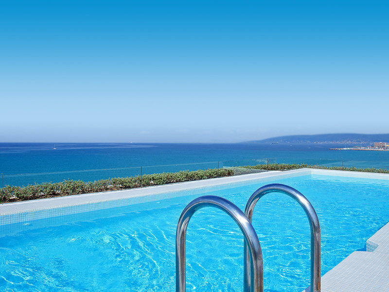 Wohlfühlatmosphäre pur im designorientierten Strandhotel mit modernem Komfort. Genießen Sie den wunderschönen Ausblick vom Balkon und von der chilligen Panoramadachterrasse auf das tiefblaue Mittelmeer und über die weite Bucht.