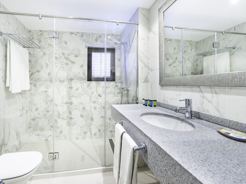 So wohnen Sie: Für angenehmes Raumklima in den Zimmern sorgen eine Klimaanlage und eine individuell steuerbare Heizung. Die Gäste können den Meerblick von Balkon oder Terrasse genießen. Die Zimmer verfügen über ein Doppelbett. Zustellbetten können angefordert werden. Außerdem sind ein Safe, eine Minibar und ein Schreibtisch verfügbar. Eine Tee-/Kaffeemaschine zählt ebenfalls zur Standardeinrichtung. Ein Bügelset ist für den zusätzlichen Komfort der Gäste verfügbar. Darüber hinaus sind ein Telefon mit Direktwahl, ein TV-Gerät mit Satelliten-/Kabelempfang, ein Radio und WiFi (ohne Gebühr) vorhanden. Die Badezimmer sind ausgestattet mit einer Dusche und einer Badewanne. Für den täglichen Gebrauch stehen ein Haartrockner, Bademäntel und ein Telefon zur Verfügung. Für besonderen Komfort in den Badezimmern sorgen Kosmetikartikel. Es sind auch rollstuhlgerechte Zimmer mit barrierefreiem Bad verfügbar. Die Unterbringung bietet Nichtraucherzimmer.