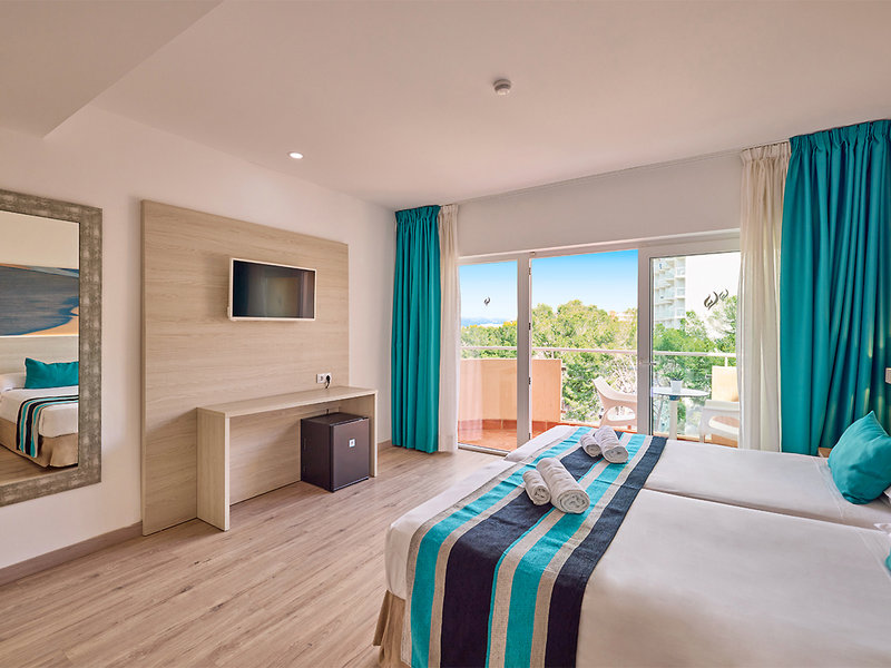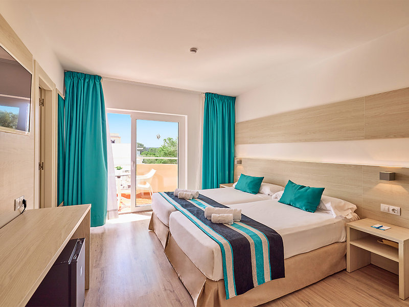 Doppelzimmer (DZC, ca. 19 qm), Klimaanlage, Minibar, TV, WLAN, Safe. Dusche, WC, Föhn. Balkon, wahlweise mit Poolblick (DZP). Max. 2E