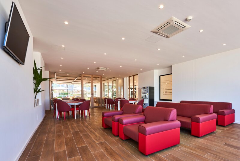Ausstattung: Pool, Kinderpool. Liegen, Schirme am Pool und am Strand (geg. Geb.), Handtücher am Pool (geg. Geb.), Pool-/Snackbar, Sonnenterrasse. Empfangshalle, Rezeption, Safe (geg. Geb.), TV-Lounge. Restaurant (Buffet) mit Terrasse, Bar, Parkplatz (geg. Geb.). 212 Zimmer, 4 Etagen, 1 Nebengebäude, 4 Lifte.