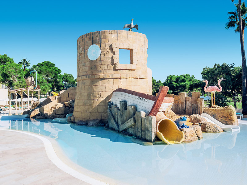 Vybavenie: Rozsiahly rekreačný rezort s 25 obytnými budovami, niekoľkými bazénmi a bazénovými plochami rozmiestnenými po celom komplexe, slnečnými terasami, ležadlami, slnečníkmi a plážovými osuškami, 2 barmi pri bazéne/snack barmi, každý s terasou na sedenie, 2 zmrzlinárňami, pojazdným občerstvením, veľkým pódiom a športovým barom. Lobby, recepcia, Wi-Fi (v cene), 3 bufetové reštaurácie (medzinárodná, texasko-mexická, malorská) a plážová reštaurácia. Národná kategória: 4 hviezdičky, 695 izieb, 2-3 poschodia.