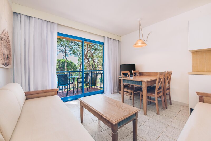 Apartmán typu C (APC, cca 50 m², PMI169), obývacia izba s rozkladacou pohovkou, 2 samostatné spálne, klimatizácia (teplo/chladenie), kuchynský kút, 32-palcový TV, telefón, Wi-Fi (v cene), trezor na prenájom. Kúpeľňa, WC, sušič vlasov. Balkón/terasa. Max. 6 osôb