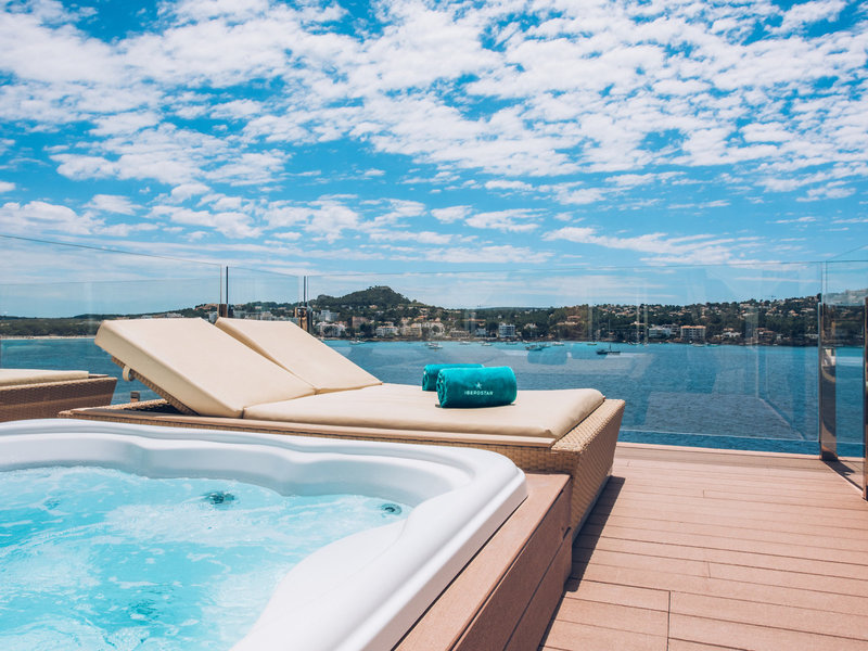 - Suite Penthouse Star Prestige Sea View (SUM5), Suite, Nichtraucherzimmer, im Hauptgebäude, Meerblick, Buchtblick, ca. 31 m², Gesamtanzahl der Räume in diesem Zimmertyp: 2, Aufteilung wie folgt: Wohnzimmer, 1 Schlafzimmer, Klimaanlage: ohne Gebühr, saisonabhängig, Heizung: saisonabhängig, Fußboden: Parkett, Safe: ohne Gebühr, Deckenventilator, Sitzecke, Sofa, Bügeleisen, Bügelbrett, Kaffeemaschine, Kaffee-/Teezubereiter, Telefon, Internet: WLAN/WiFi: ohne Gebühr, Fernseher, Reinigungsservice: ohne Gebühr, Dusche, WC, Bademantel: ohne Gebühr, Slipper: ohne Gebühr, Föhn, Balkon: mit Sitzgelegenheit, Terrasse: Dachterrasse, mit Liegestühlen, mit Liegen, mit Whirlpool