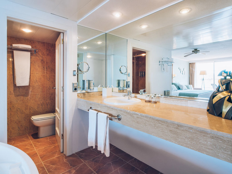 - Junior suita typ 1 (JSX1), junior suita, nefajčiarska izba, minimálny vek v izbe: 16 rokov, v hlavnej budove, výhľad na more, cca 40 m², klimatizácia, trezor, pohovka, minibar: za poplatok , telefón, Internet: WLAN/WiFi: bez poplatku, TV, vaňa s integrovanou vírivkou, fén, kozmetické zrkadlo, balkón