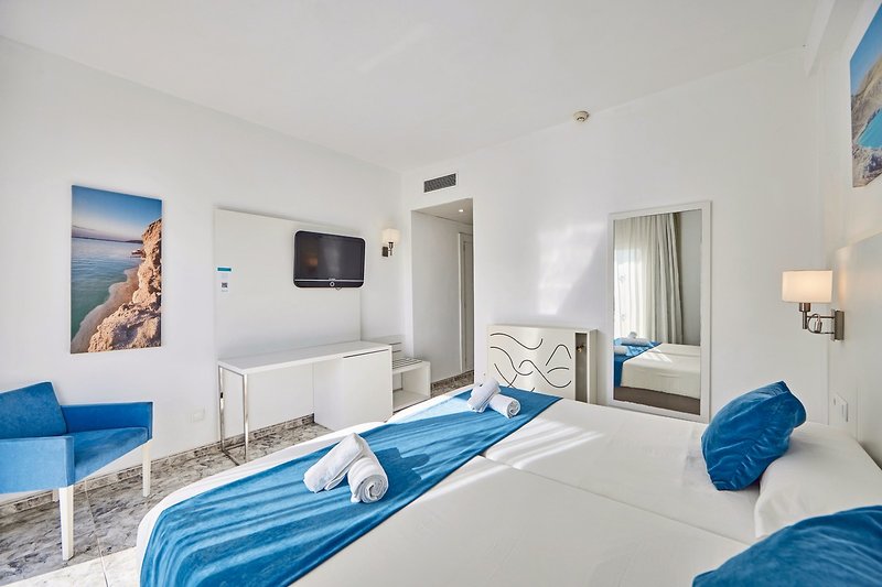 - 21-25 qm, Doppel, Poolblick, Bettwäsche, Handtücher und Matratzen aus 100% Bio-Baumwolle, Schreibtisch, 1 Bad, Dusche, Haartrockner, Klimaanlage, Safe (kostenpflichtig), 1 TV (Sat-TV), WLAN, Kühlschrank, Balkon (möbliert)