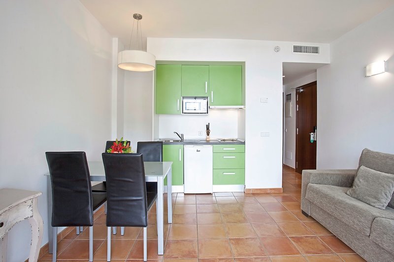 - 31-35 qm, Appartement, Gartenblick, Poolblick, 1 separates Schlafzimmer, 1 Bad, Dusche, Haartrockner, Klimaanlage, Heizung, Mini-Kühlschrank, Safe, 1 TV (Sat-TV), WLAN, Kochnische, Wasserkocher, Mikrowelle, Kaffeemaschine, Balkon oder Terrasse (möbliert)